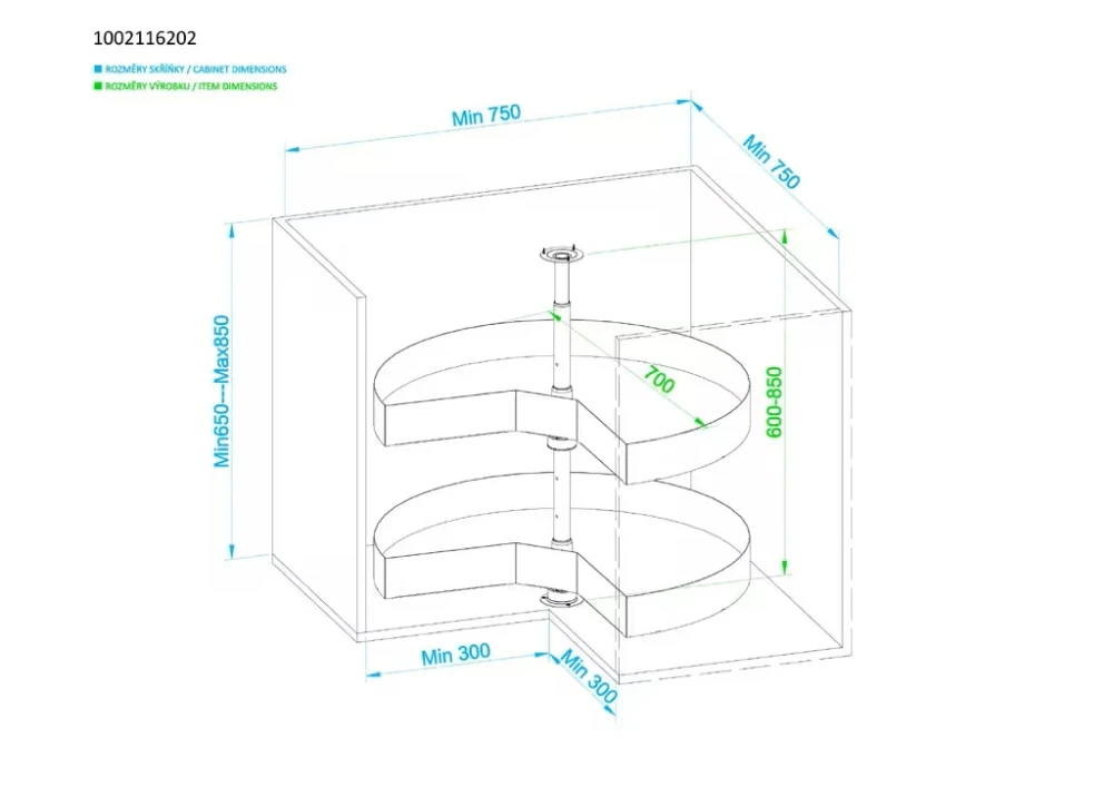 Štýlový otočný karusel s dvomi hlbokými košmi v antracitovej farbe umožňuje pohodlné a prehľadné uloženie kuchynských potrieb v rohových skrinkách. Vďaka otočnému mechanizmu s uhlom 270° získate maximálny prístup k uloženým veciam. Protišmykové dno košov zabezpečí stabilitu aj pri otáčaní. Karusel je výškovo nastaviteľný v rozmedzí 600 – 850 mm, čo zaručuje flexibilitu pri montáži.