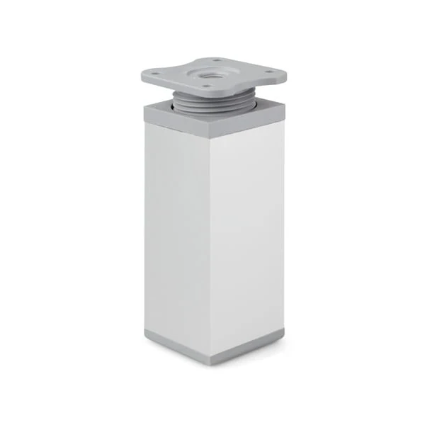 Štvorcová hliníková nožička s reguláciou výšky, určená pre kuchynské a kúpeľňové skrinky, komody, skrinky a doplnkový nábytok. Slúži na stabilizáciu, vyrovnanie a vizuálne oddelenie nábytku od podlahy. Výšková regulácia do 20 mm umožňuje presné vyrovnanie pri nerovnostiach podlahy. Spodná plastová pätka chráni podlahu pred poškriabaním. Nožička nie je nosná. Nábytok musí byť vždy pevne ukotvený do steny v súlade s montážnymi pokynmi výrobcu.