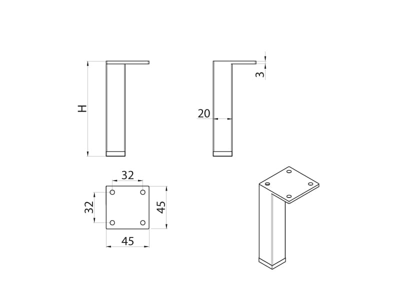 Vyznačuje sa jednoduchým industriálnym dizajnom, vysokou pevnosťou a stabilnou konštrukciou. Vďaka oceľovému vyhotoveniu je vhodná aj pre ťažší nábytok, pričom matná čierna farba v loftovom štýle dodáva nábytku moderný a nadčasový vzhľad. Nožička nie je výškovo nastaviteľná a je určená pre pevné a stabilné osadenie nábytku.