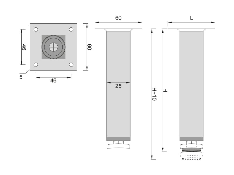 - Nábytková nožička VARIO 25x25x100mm chróm lesklý
