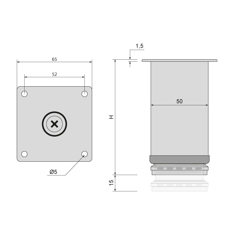 Nožička sa montuje na spodnú časť nábytku pomocou montážnej platničky. Regulácia výšky umožňuje jednoduché vyrovnanie nábytku po jeho osadení.