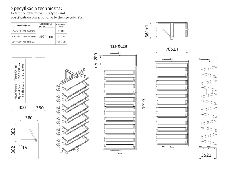 Otočný kôš na topánky zo série SYMPHONY je perfektným a moderným riešením pre organizáciu topánok vo vašej domácnosti. Kôš má 12 políc, ktoré umožňujú pohodlné uloženie topánok a zabezpečujú, aby zostali úhľadne usporiadané. Moderný dizajn a odolná oceľová konštrukcia dopĺňajú každý interiér a dodávajú mu elegantný a svieži vzhľad. Vysokokvalitné materiály a precízne spracovanie každého prvku zabezpečujú odolnosť a spoľahlivosť modelu. 360° otáčanie celého košíka umožňuje jednoduchý prístup ku každej poličke. Nemusíte siahať hlboko do košíka, aby ste našli svoje topánky – jednoducho otočte policu pre ľahký prístup ku každému páru topánok. Organizácia a výber správneho páru topánok nebol nikdy jednoduchší. Každá polica je naklonená pre jednoduché používanie. Toto usporiadanie políc poskytuje ľahší prístup k topánkam a umožňuje lepšiu viditeľnosť, vďaka čomu je výber správneho páru oveľa jednoduchší. Vďaka správnemu upevneniu zostávajú topánky na svojom mieste, takže sa nemusíte obávať, že vám vypadnú.