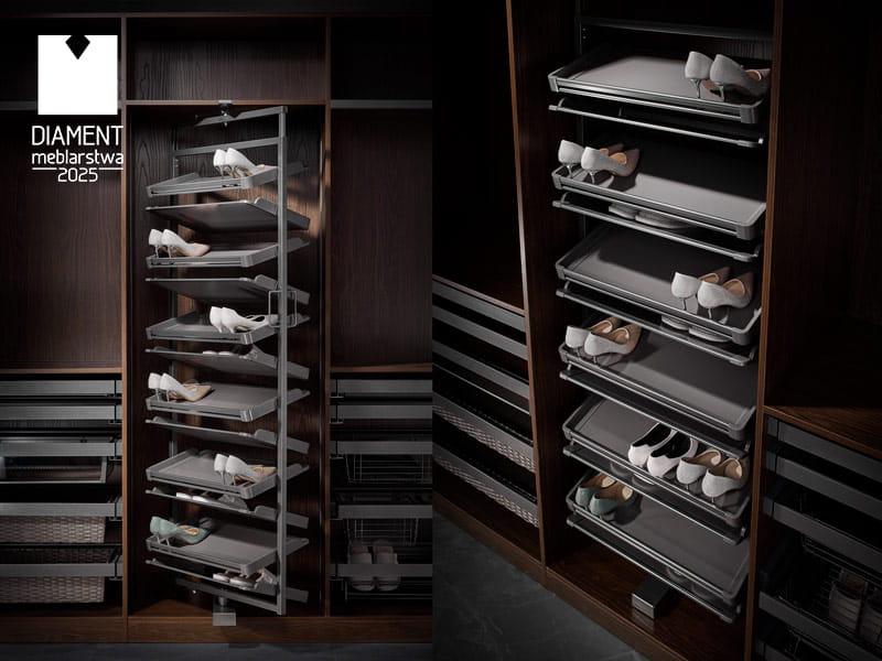 Otočný kôš na topánky zo série SYMPHONY je perfektným a moderným riešením pre organizáciu topánok vo vašej domácnosti. Kôš má 8 políc, ktoré umožňujú pohodlné uloženie topánok a zabezpečujú, aby zostali úhľadne usporiadané. Moderný dizajn a odolná oceľová konštrukcia dopĺňajú každý interiér a dodávajú mu elegantný a svieži vzhľad. Vysokokvalitné materiály a precízne spracovanie každého prvku zabezpečujú odolnosť a spoľahlivosť modelu. 360° otáčanie celého košíka umožňuje jednoduchý prístup ku každej poličke. Nemusíte siahať hlboko do košíka, aby ste našli svoje topánky – jednoducho otočte policu pre ľahký prístup ku každému páru topánok. Organizácia a výber správneho páru topánok nebol nikdy jednoduchší. Každá polica je naklonená pre jednoduché používanie. Toto usporiadanie políc poskytuje ľahší prístup k topánkam a umožňuje lepšiu viditeľnosť, vďaka čomu je výber správneho páru oveľa jednoduchší. Vďaka správnemu upevneniu zostávajú topánky na svojom mieste, takže sa nemusíte obávať, že vám vypadnú.