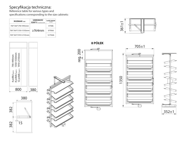 - Otočný kôš na topánky 8-policový 1350-1550mm antracit