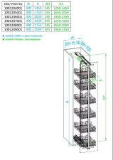 Balenie obsahuje: 5x kôš s plným dnom, výškovo nastaviteľný rám, sad držiakov dvierok, sada plnovýsuvov, montážna sada