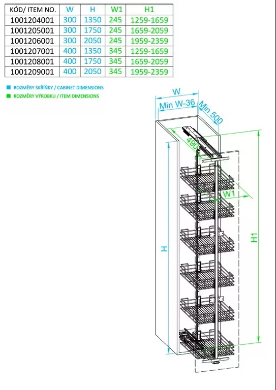 Rozmer výrobku (Š x H x V): 345 x 490 x 1659-2059mm