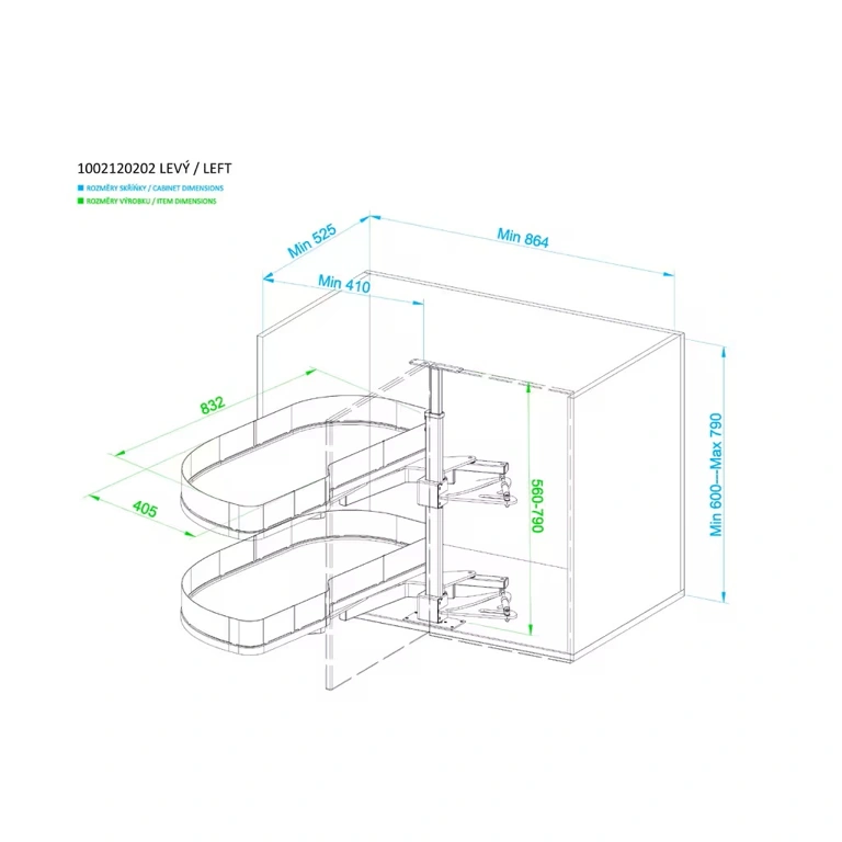 Rozmer výrobku (Š x H x V): 832 x 405 x 560-790mm