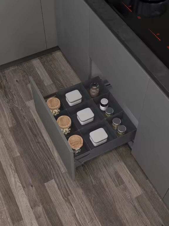 Praktický rozdeľovač pre plnovýsuvný kôš so šírkou 600 mm umožňuje lepšiu organizáciu vnútorného priestoru. Jednoducho rozčlení zásuvku na prehľadné sekcie, aby mali všetky kuchynské potreby svoje miesto.