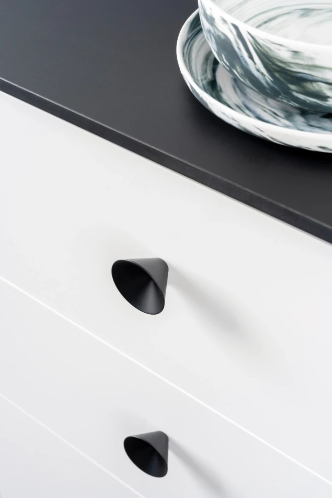 Úchytka od značky CONIC Viefe, navrhnutá nemeckým štúdiom Kaschkasch, zaujme výrazným lievikovitým tvarom inšpirovaným estetikou 70. rokov, ktorá sa opäť vracia do interiérového dizajnu. Tento charakteristický tvar jej dodáva osobitosť a odlišuje ju od bežných knobiek.