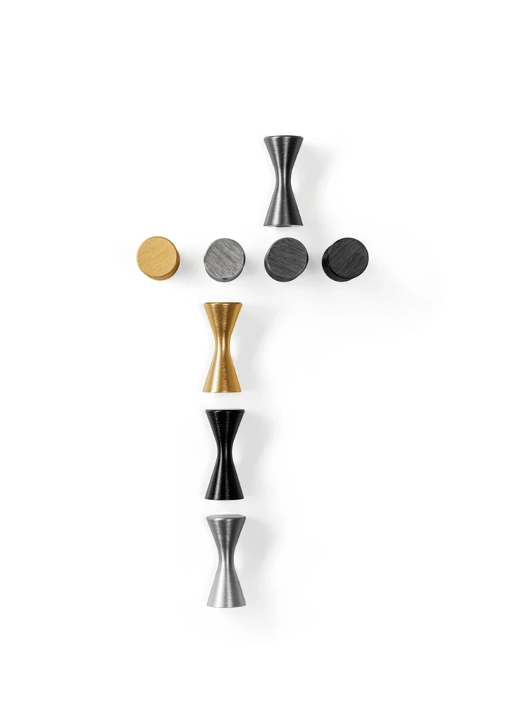 Model Diabolo je navrhnutý tak, aby v interiéri pôsobil ucelene. Okrem nábytkovej úchytky je dostupný aj vo verzii nástenného vešiaka, čo umožňuje dizajnovo zjednotiť nábytok a steny v chodbách, spálňach či kúpeľniach. Kolekcia ponúka rôzne trendové povrchy, ktoré nájdete v súvisiacich produktoch.