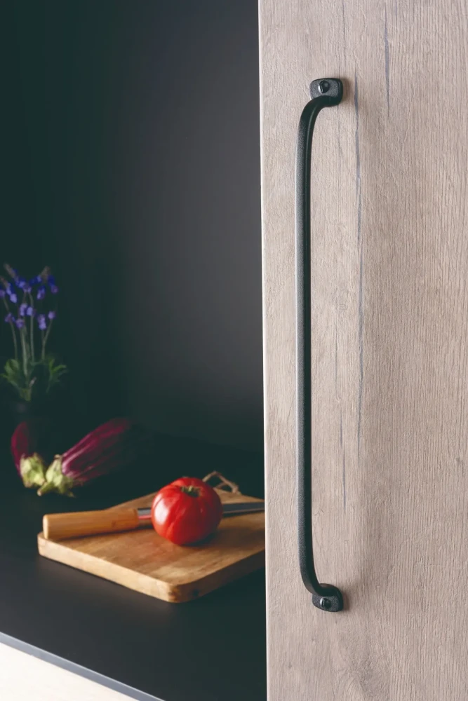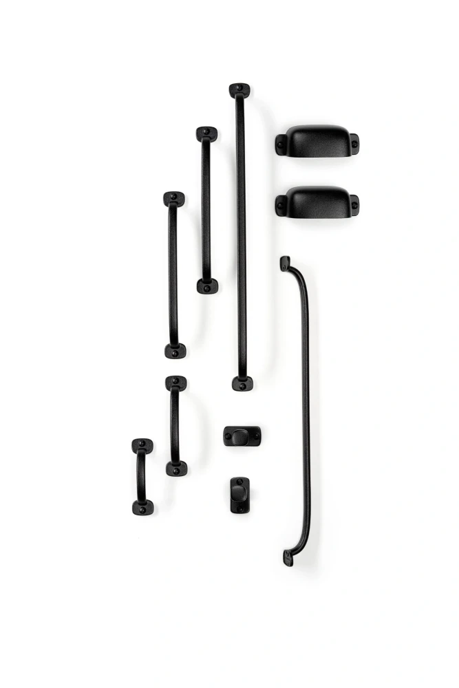 Čierna textúrovaná povrchová úprava dokonale ladí s drevom, kovom či betónom a zvýrazní atmosféru loftových kuchýň, moderných chalúp aj komerčných priestorov. Kolekcia zahŕňa knobku, ergonomicky tvarovanú mušľu a klasické úchytky, čo umožňuje vytvoriť jednotné a štýlovo silné riešenie v celom interiéri.