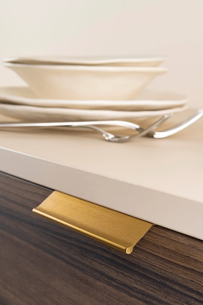 Moderná hliníková úchytka do hrany Viefe WING s ergonomickým tvarom pre pohodlné uchopenie. Jednoduchá inštalácia bez frézovania a elegantný minimalistický dizajn. Dostupné rôzne povrchové úpravy (brúsená čierna, nerez, brúsená mosadz a brúsená bronz) Extra dĺžka 1200 mm pre moderné skrine.