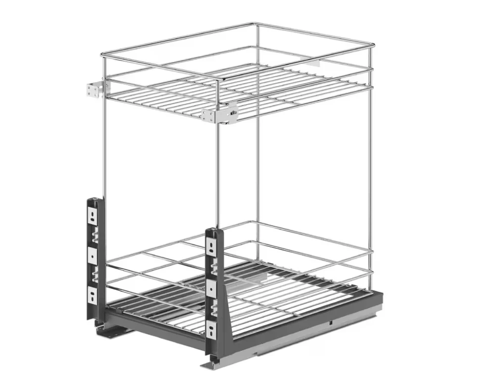 Dvojkoš zo série KOMFORT s montážou do dna skrinky predstavuje spoľahlivé riešenie pre efektívne využitie úzkych kuchynských priestorov. Systém je vybavený kvalitnými výsuvmi s tlmeným dovieraním, ktoré zabezpečia tichý a plynulý chod. Drôtené koše ponúkajú dostatočný priestor pre kuchynské doplnky, dochucovadlá či čistiace prostriedky.